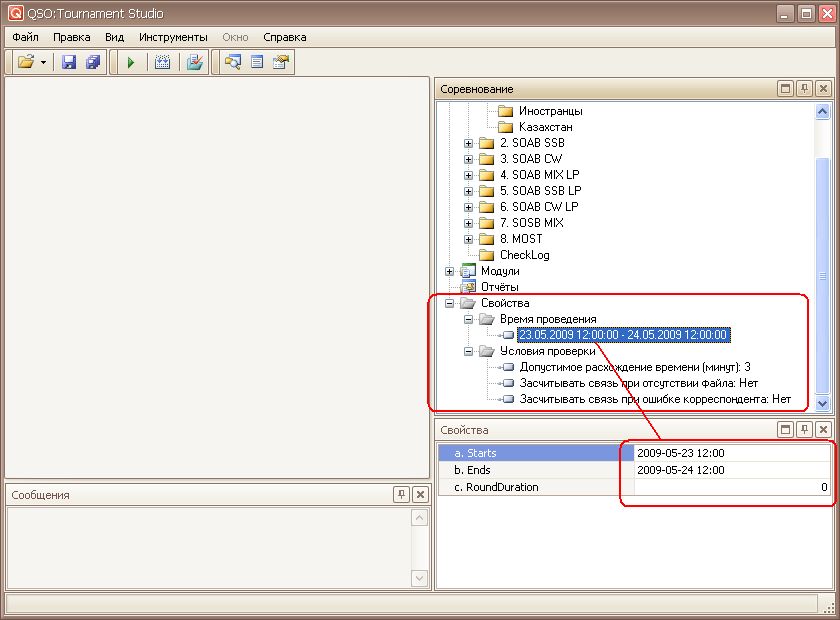 "Свойства" дерева турнира. Выделите элемент настройки, щелкнув по нему мышью,