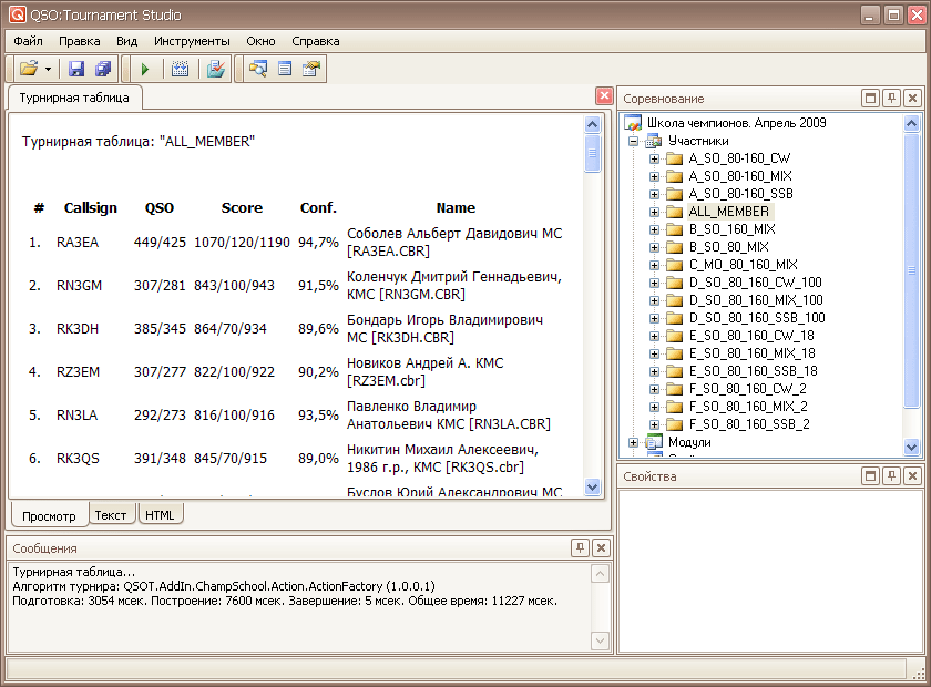 радиолюбителей на основании файлов-отчётов, представленных в формате ЕРМАК, Cabrillo (*.cbr),