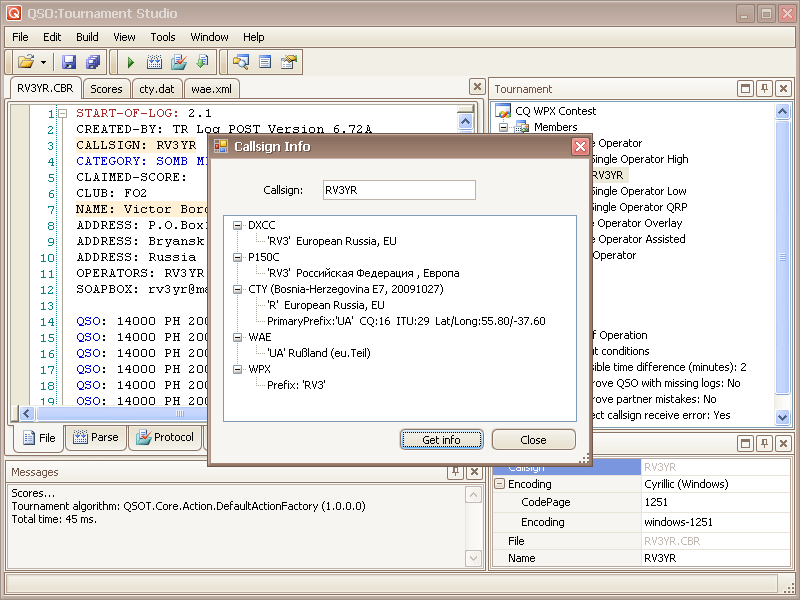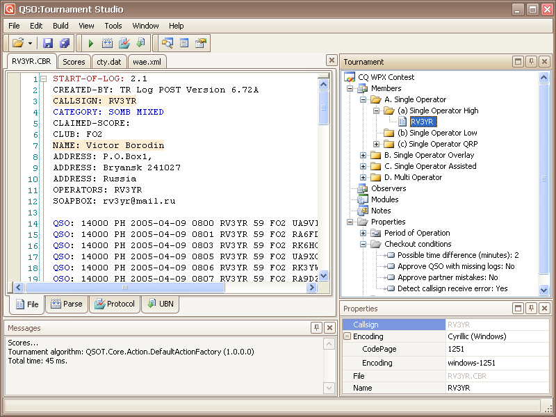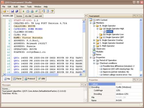 presented in format Cabrillo (*.cbr). Processing of files of other formats is possible.