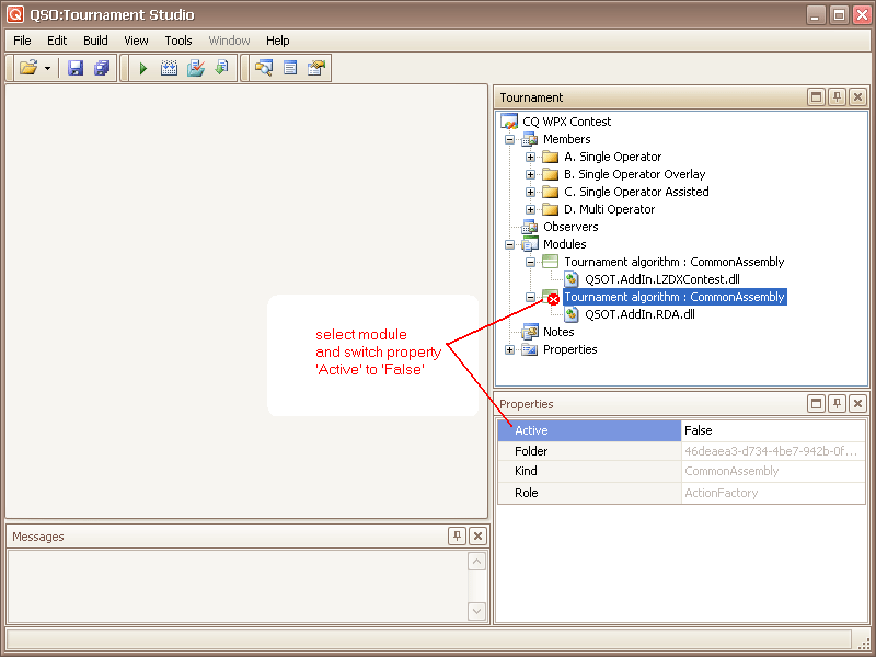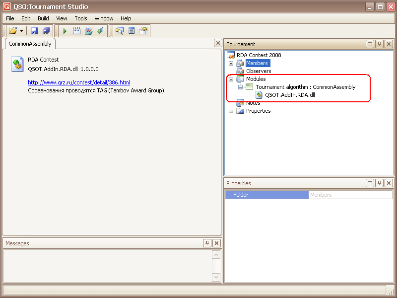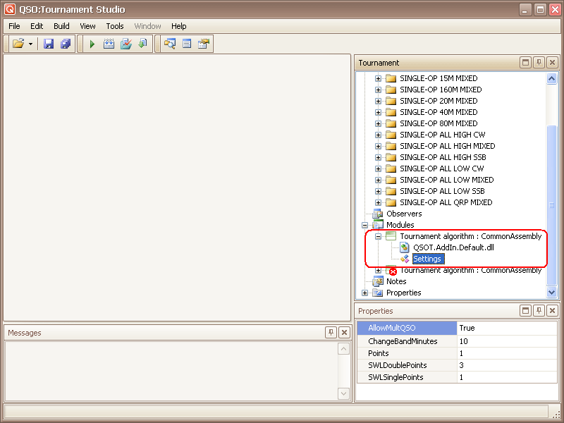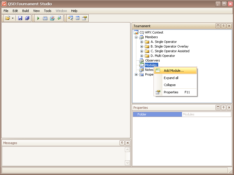 Click the right button of the mouse on node "Modules" of a tournament tree.