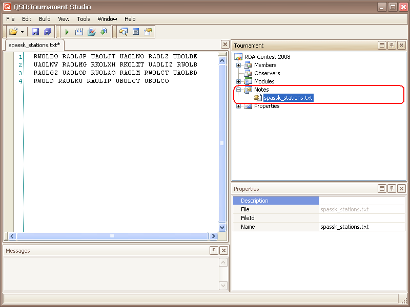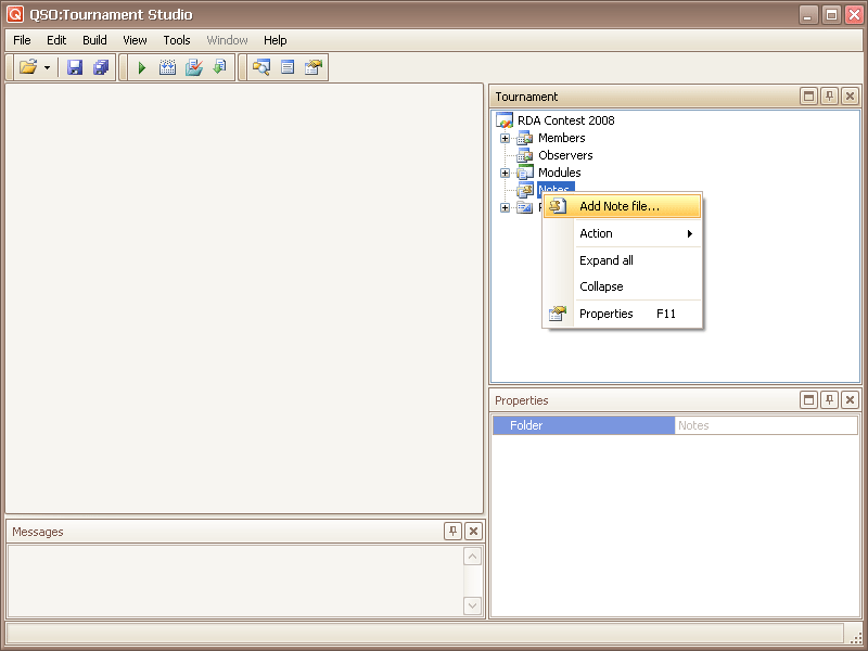 Click the right button of the mouse on node "Notes" of a tournament tree.