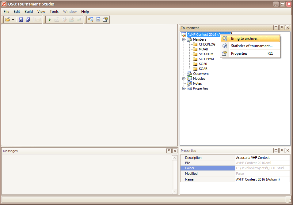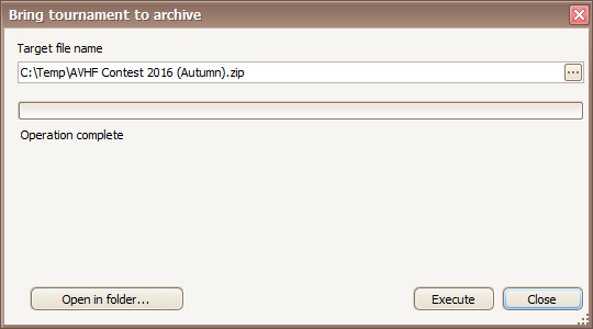 For execution of an archiving: Open competition in the program, right-click on root node in a tournament tree.