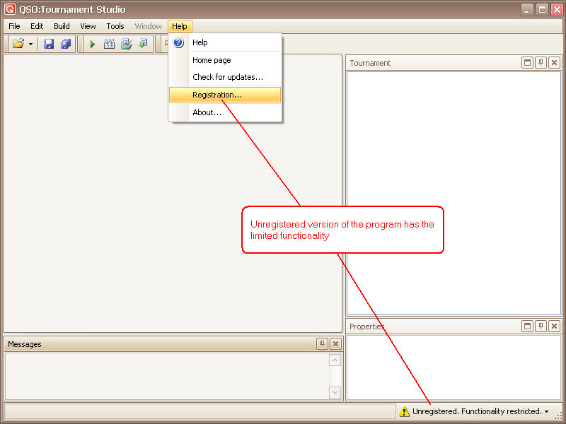 will execute a command "Registration..." from the main menu "Help" (or from the emerging