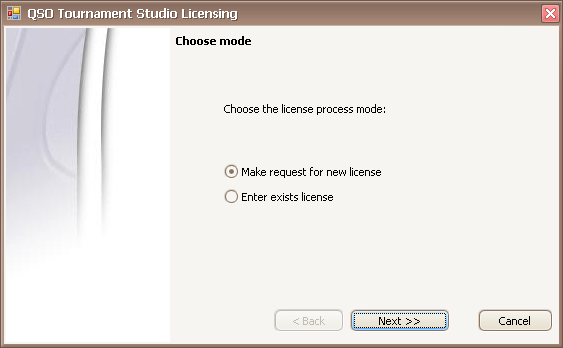 Choose the license process mode: "Make request for new license".