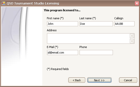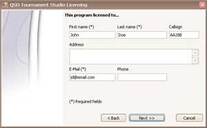 Enter a name, surname, call sign (if is), e-mail address of the license owner.