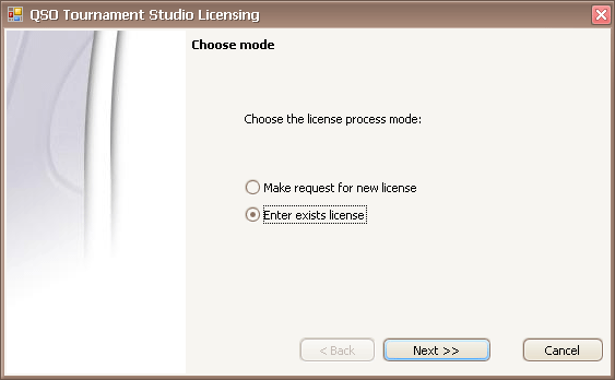 Choose the license process mode: "Enter exists license".