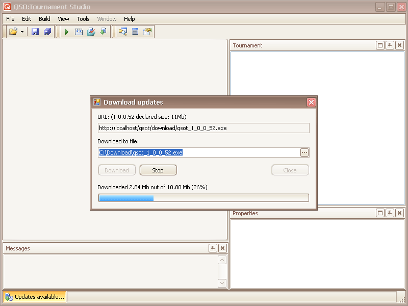 Button "Download" begins file loading. Button "Stop" allows to suspend loading.
