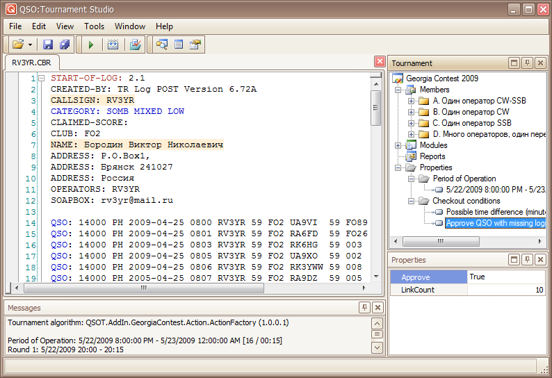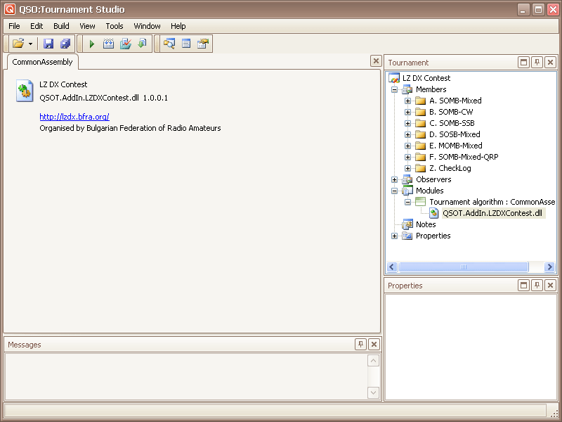 competition presented in the form of tree-like structure. Panel "Property" is intended
